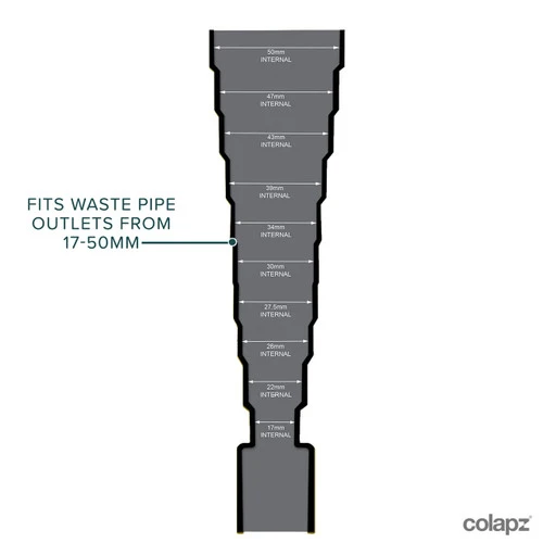 The adaptor will allow you to fit waste pipe diameters from 17mm up to 50mm.