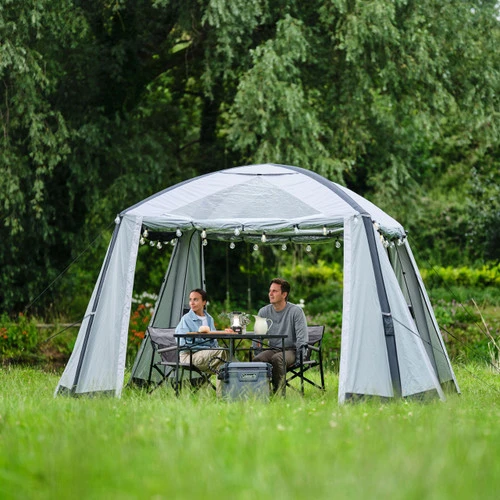 - Silver lining to flysheet – Reduces the temperature under the shelter canopy on hot days