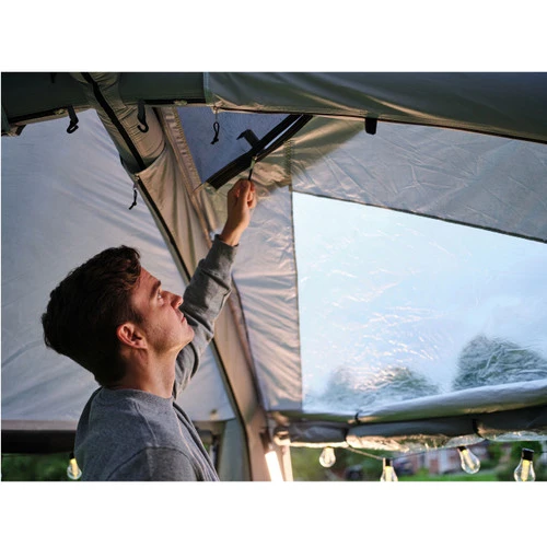 - Doorway converts into an awning – Allowing rain protection, light and airflow inside the shelter