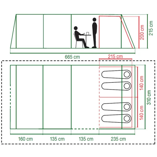 The large open porch extends the living space while offering protection from the elements. Additional features include barrier free access to ensure easy movement in and out of the tent, both high and low ventilation to reduce the risk of condensation and zipped window shades for adjustable privacy.