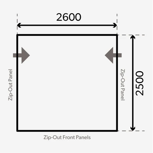 The Dometic Rally AIR All-Season 260 S features the quick pitch guying system with Heavy-duty straps can be pegged out in seconds. Peg the bottom strap taut and adjust the top buckle to apply tension. Another feature over the traditional Rally awnings is Front panels can be zipped out to reduce weight and open the awning up veranda style.