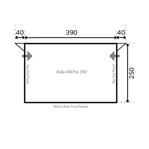 The Rally AIR Pro 390 S is the most popular of at the Rally Pro sizes that we sell and needs 390cm of straight rail on your caravan to fit and provide a spacious and light airy awning.