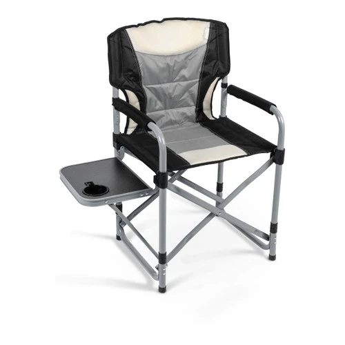 A very strong and extremely comfortable armchair with side table and cup holder that can fold compactly for easy transportation and storage.