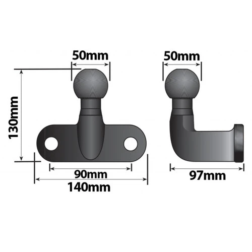 EU approved 50mm high reach towball provides clearance for caravan couplings with integral stabiliser (e.g. AL-KO & Winterhoff)