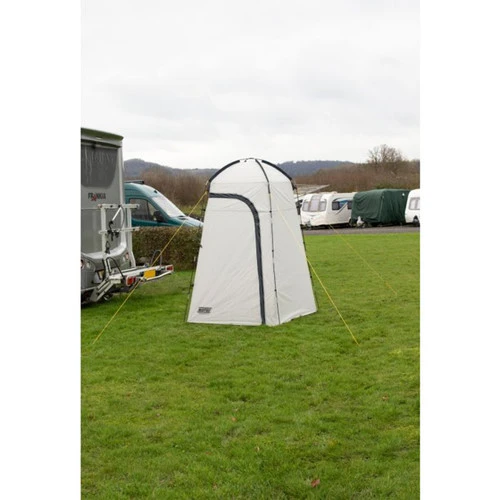Increase your caravan space with this multi purpose use caravan tent, making an excellent outdoor portable shower tent or extra storage tent. Including fibreglass poles for high strength and roll back front door with elasticated toggles for ease of use.