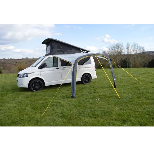 The Stratford Air Sun Canopy for Campervans provides shade but doesn’t keep you penned in like an awning! The sturdy airframe is quick and easy to inflate via a single point air tube. The canopy includes optional. removable sides for added privacy. Kadar strips allow for easy attachment to your awning rail, giving you extra stability. Hand pump, guy ropes, pegs and a compact carry bag are all included.