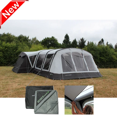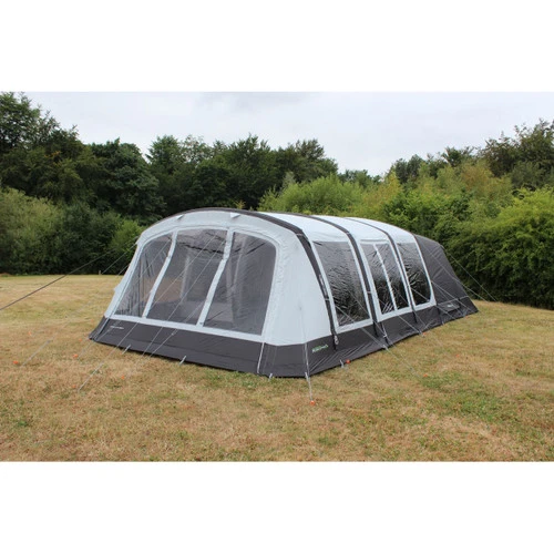 Upgraded for 2023 is the multi award winning Airedale tent range, offering more value than ever before. This Premium Seven + Four berth Airedale 7.0SE inflatable family tent has been updated further for the 2023 season, building on the success of the critically acclaimed and exclusive multi-functional double side annexe (Registered Design). This annexe has been designed with a single Air Tube instead of the Steel Pole, making it a true Family Air Tent, and giving it much smoother ergonomic lines, plus an additional window and curtains. The same optional internal 2 berth inner tent is still available which increases the total sleeping capacity by 2 with a further option to hang a Universal inner tent in the living space making 4 in total. thus allowing a maximum sleeping capacity of Eleven. The parallel design of the porch area means that only a fraction of extra pitch space is used to the side of the tent. A huge roll-back panel complete with mesh windows separates the internal living space from the front porch, which can be zipped back or totally enclosed, this allows for complete versatility whilst offering ventilation and a pleasant feeling of open space. Further multiple ground-breaking and practical additions such as the new fully removable front vestibule hook and loop fastening groundsheet that gives a far cleaner appearance and avoids trip hazards in this area. Utilizing the premium innovations that you would expect from our flagship Airedale collection, the Airedale 7.0SE includes a Double width Patio style side door with Phoenix mesh ventilation, a wardrobe pole, and zip-up curtains to name a few. This is the perfect large family tent for those who truly appreciate a spacious camping experience.