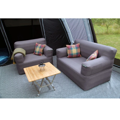 The Outdoor Revolution CAMPESE DUO two seat sofa and chair set is a stylish, luxury addition to any family tent, driveaway or caravan awning; creating a comfortable home from home ambiance to kick back and relax. Comprising of a two seat inflatable sofa and armchair, sold together as a set and represents unbeatable value for money.