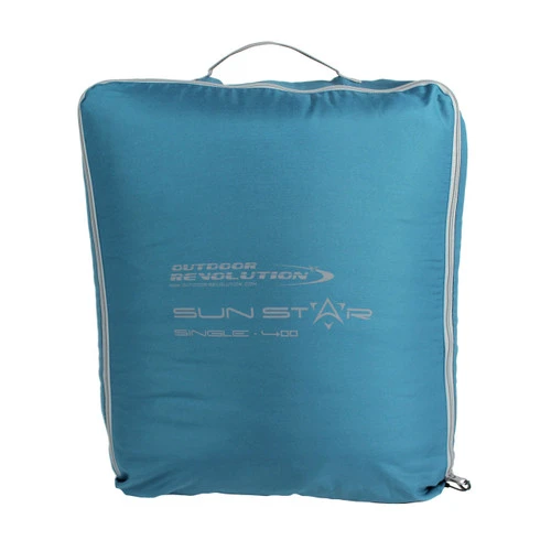 The Outdoor Revolution Sun Star Single 400 Sleeping Bag is a heavier weight, single square sleeping bag with a cowl hood, and is perfectly suited to comfortable family camping in the UK and Europe from early Spring through to mid Autumn. This sleeping bag gives you plenty of extra room at the foot area for a more comfortable night’s sleep without the restrictions of a mummy-style bag. This bag comes in both left and right-hand side zip models which can easily be joined to give you a generous king size double bag. The outer shell fabric feels soft and warm thanks to the micro polyester and the lining is warm to touch thanks to the brushed embossed 190T polyester. The double zip at the base allows for extra air flow during those warmer nights in summer. All round the Sun Star Single 400 is an excellent heavier weight mid-level sleeping bag that has not compromised on quality or features and will give the user many years of comfort and pleasure.