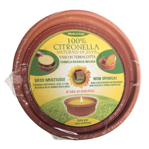This Large Terracotta Pot Candle have an approximate burn time of 35 hours and are perfect for helping to keep away those pesky mosquitoes in the evening yet to us is a pleasant lemon fragrance.