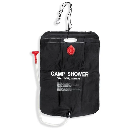 Ideal for use while away camping or on the beach, this solar shower can hold up to 20 litres/5 gallons of water. It is manufactured from a non-toxic resistant PVC material & comes with a flexible tube & shower head. Simply fill shower with water & leave in direct sunlight to obtain desired water temperature.