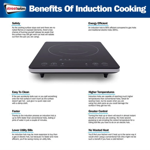 - Greater control. Turning the heat up or down will result in almost instantaneous results on what you are cooking. No more second-guessing or pre-empting the correct temperature for a rolling boil like you have to do on an electric hob.