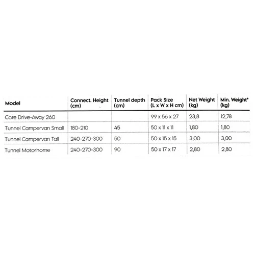 - Tunnel Motorhome: Connection height: 240-270-300 cm, Tunnel depth: 90-65-65 cm £125