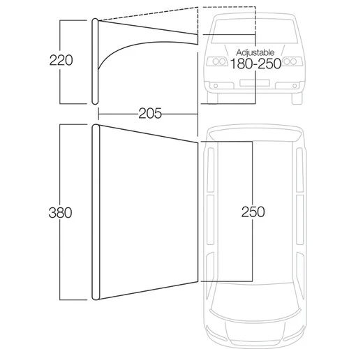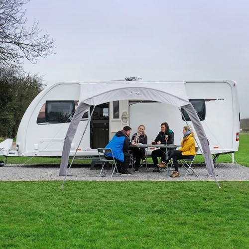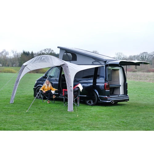 The perfect sun canopy with a kador length of 2.5m suitable for caravans, campervans or motorhomes. Great for any campsite as a space to escape the sun and relax in the shade or creating a covered entry from the rain, simply inflate your AirBeam® Sky Canopy in minutes with the single beam.