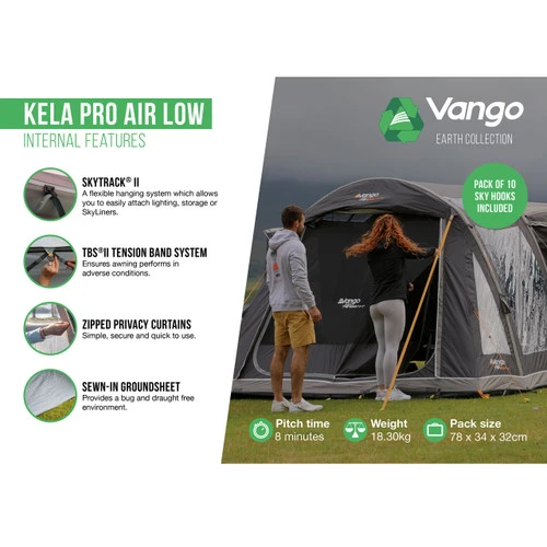 An excellent space to spend time with friends and family, the hugely popular Vango Kela drive away awning inflates in a few minutes leaving you with more time to enjoy your break. Designed to attach effortlessly to the side of your vehicle, the Kela has 4 attachment options and the tunnel space creates the ideal storage area or corridor, so you can keep your awning and vehicle clean and dry. Whatever your adventure, the Kela will be there at the end of the day
