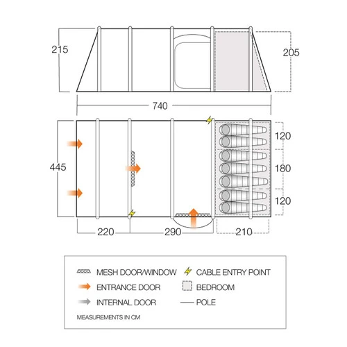 The Lismore Air 700DLX, is a 7-man inflatable AirBeam® tent ideal for longer family camping holidays. New for 2023, it comes with an additional groundsheet protector, which will protect and extend the life of your groundsheet and tent. The integrated front awning provides additional living space, while the Villa Construction maximises the usable indoor space and provides excellent height. The large, integrated awning and extra-large living area offer ample room for dining, socialising or relaxing.